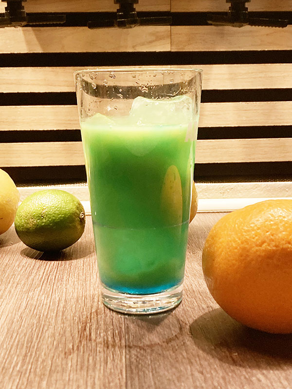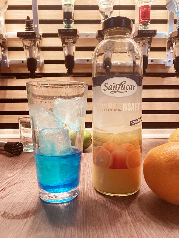 40 ml Blue Curacao Likör und Eis